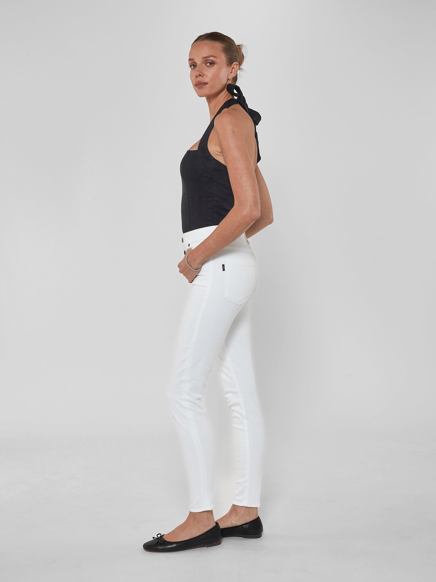 Hand-crafted in LA with eco-friendly Japanese modal blend fabric, the Eternal White Skinny Jean in Twill keeps its bright white hue without fading. Featuring a high rise, exposed PS signature buttons, and shapes your figure for a flattering and sculpted fit.