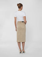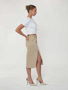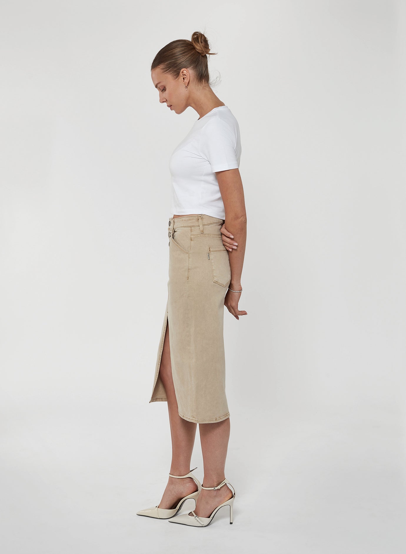 Introducing our new buttoned midi length skirt. Featuring a high rise, exposed PS signature buttons and a front split that is effortlessly elegant. Made in LA from an eco-friendly Japanese blend twill that provides comfort and style for any occasion.
