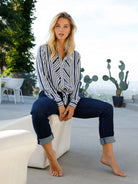 Front Tie Blouse in Navy White