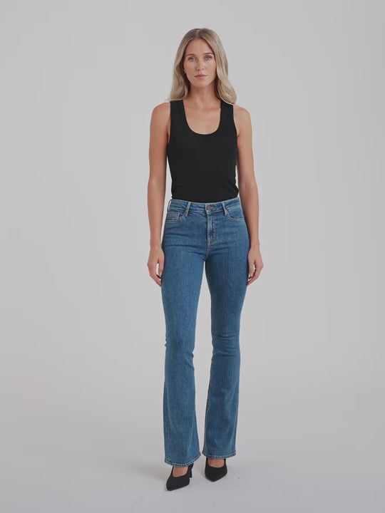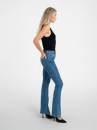 Meet our iconic flare fit in our new Pacific wash. This best seller features a 33” inseam and high-rise cut that flatters and elongates your legs for an incredible slimming silhouette. Hand-crafted in LA from luxurious stretch Japanese denim for an ultra-soft, body-sculpting fit. Perfect from day to night.