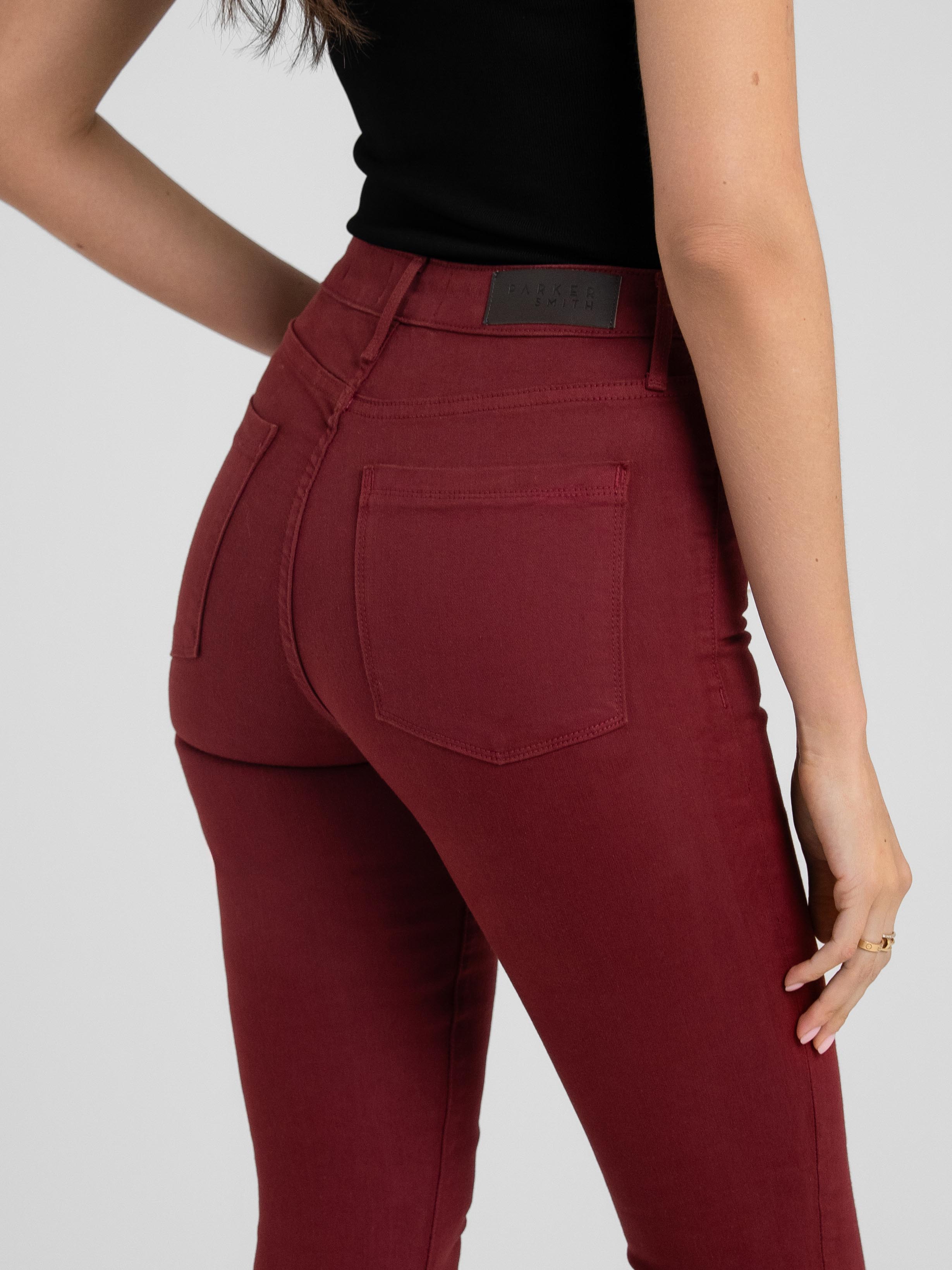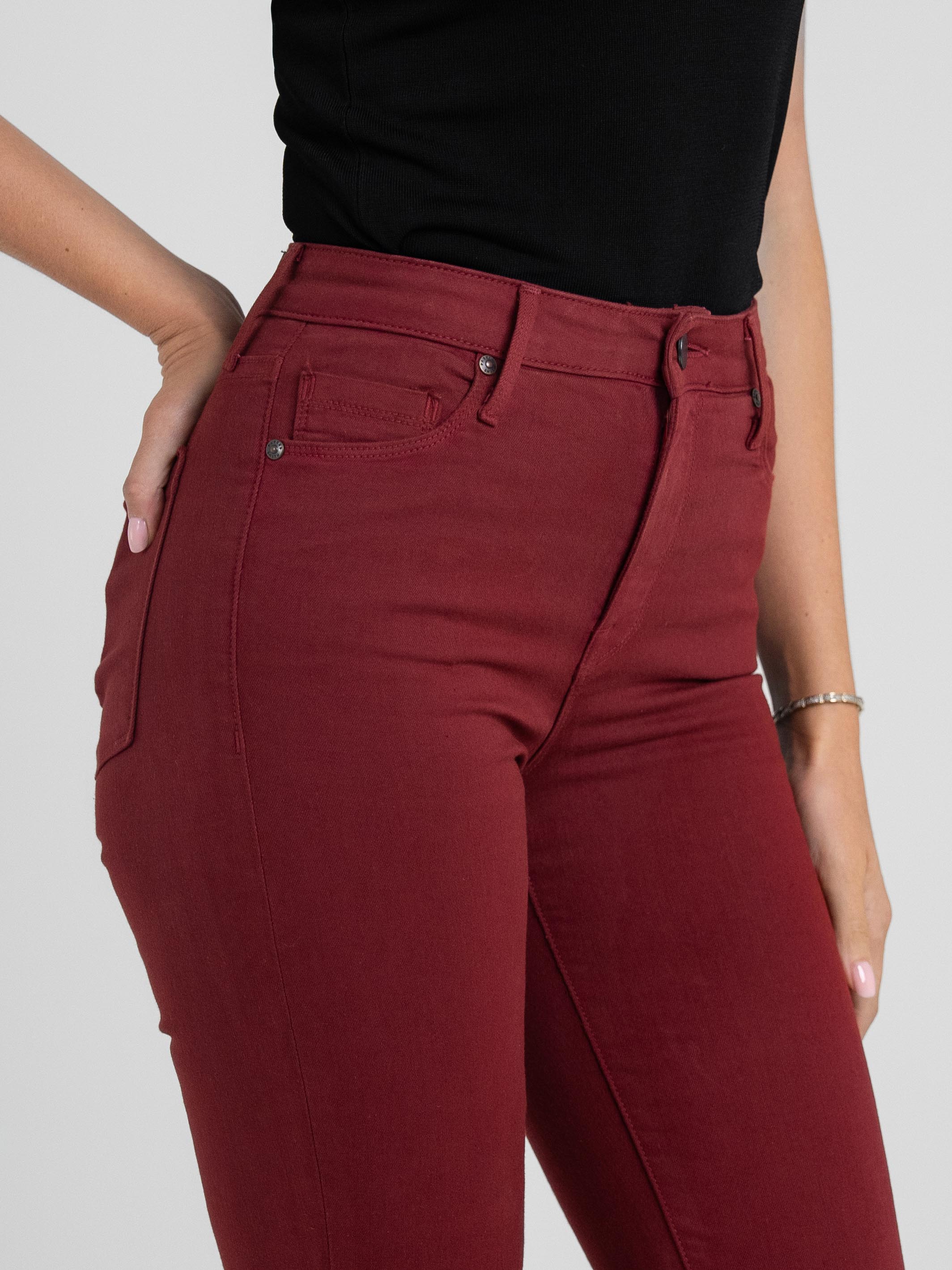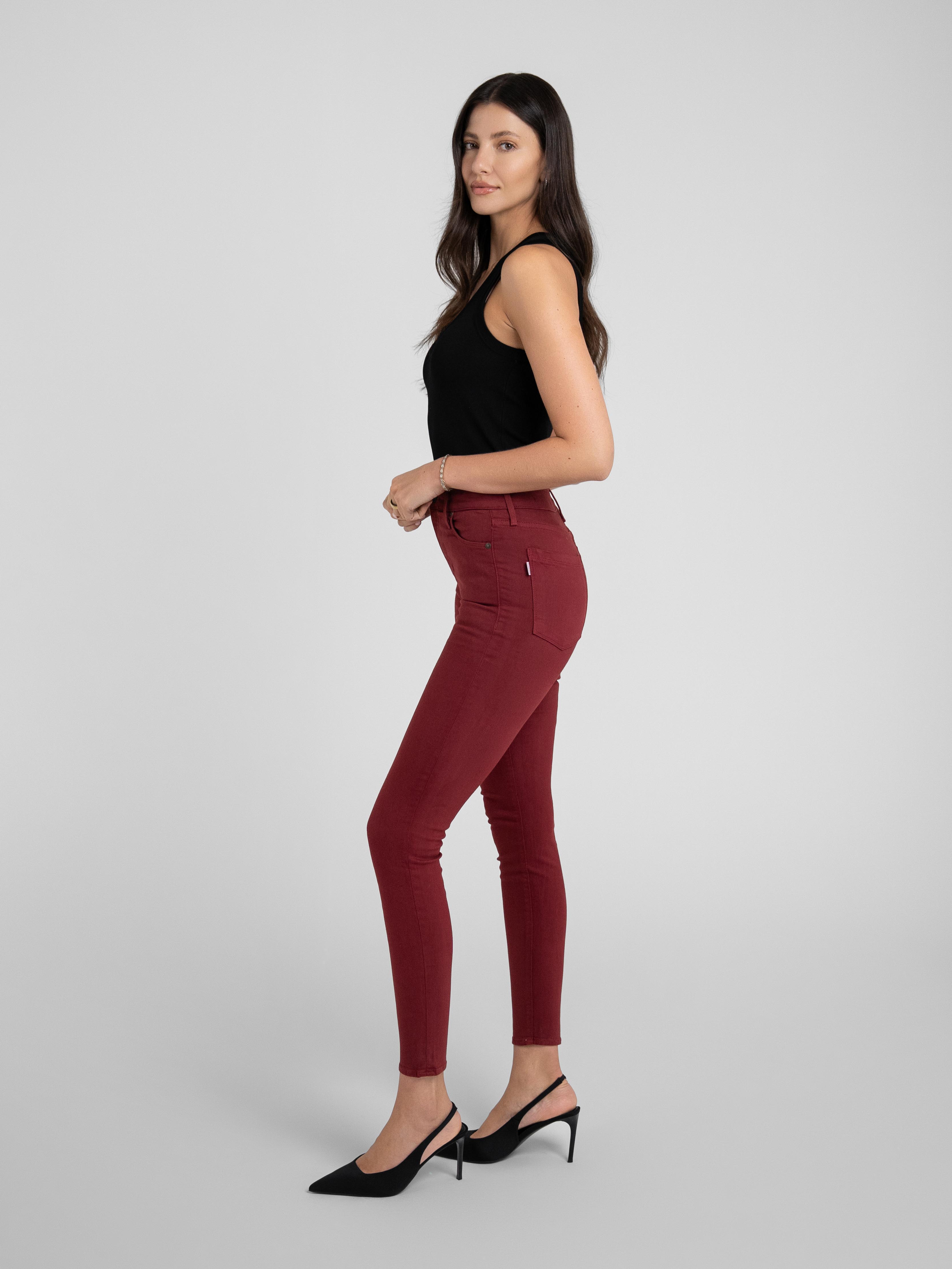 Meet our classic skinny jeans in Merlot featuring a high-rise that shapes your figure for a flattering and sculpted fit. Made in LA from an eco-friendly Japanese blend twill that provides comfort and style for any occasion.