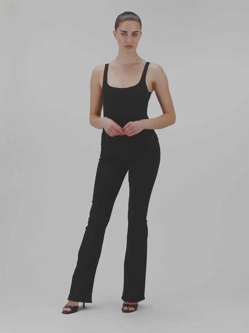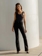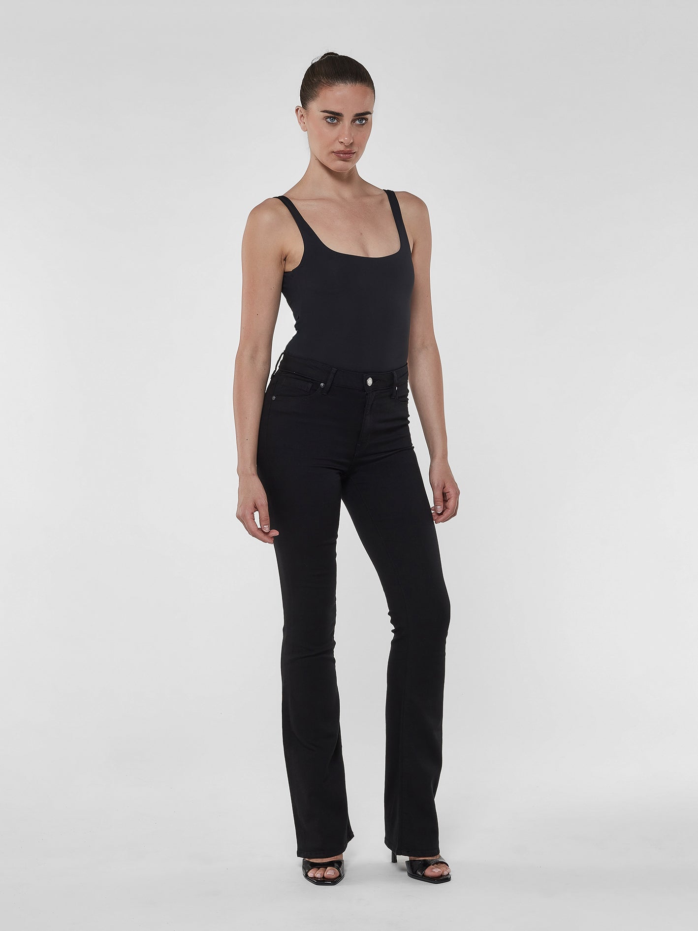 Watch heads turn with our bootcut fit. Hand-crafted in Los Angeles from luxurious stretch European denim for an ultra-soft, body-sculpting fit, these flare jeans feature a popular high-rise cut that flatters and elongates your legs for an incredible slimming silhouette.