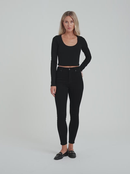 The ultimate wardrobe staple that fit like a dream. Hand-crafted in Los Angeles from our signature European black denim these are the perfect choice for comfortable everyday wear. Featuring an ultra-high rise, these shape your figure for a flattering and sculpted fit.
