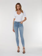 Meet our classic skinny jeans. Hand-crafted in Los Angeles from luxurious stretch Japanese denim for an ultra-soft, body-sculpting fit, these jeans feature a popular mid-rise cut that flatters and elongates your legs.