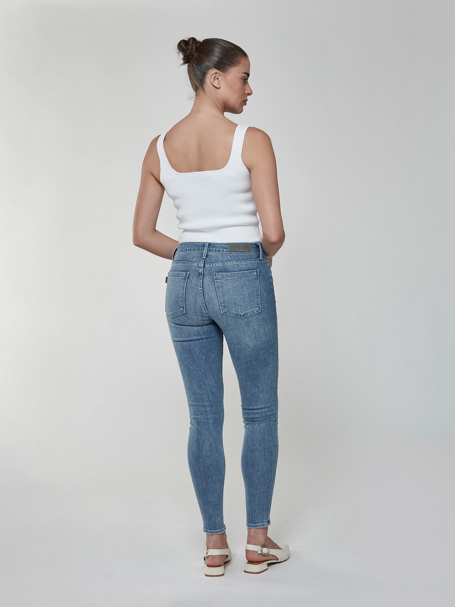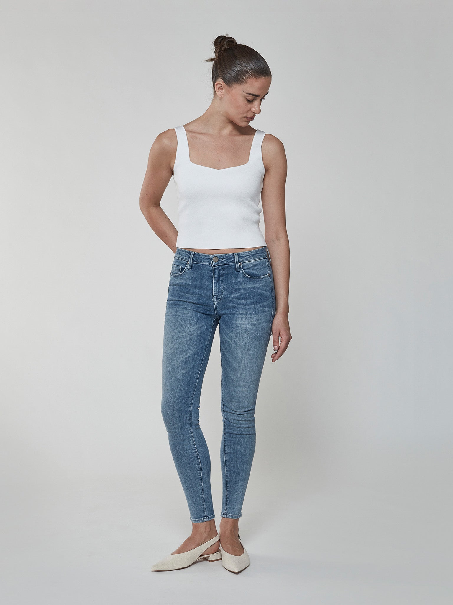 Meet our classic skinny jeans. Hand-crafted in Los Angeles from luxurious stretch Japanese denim for an ultra-soft, body-sculpting fit, these jeans feature a popular mid-rise cut that flatters and elongates your legs.