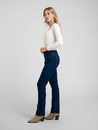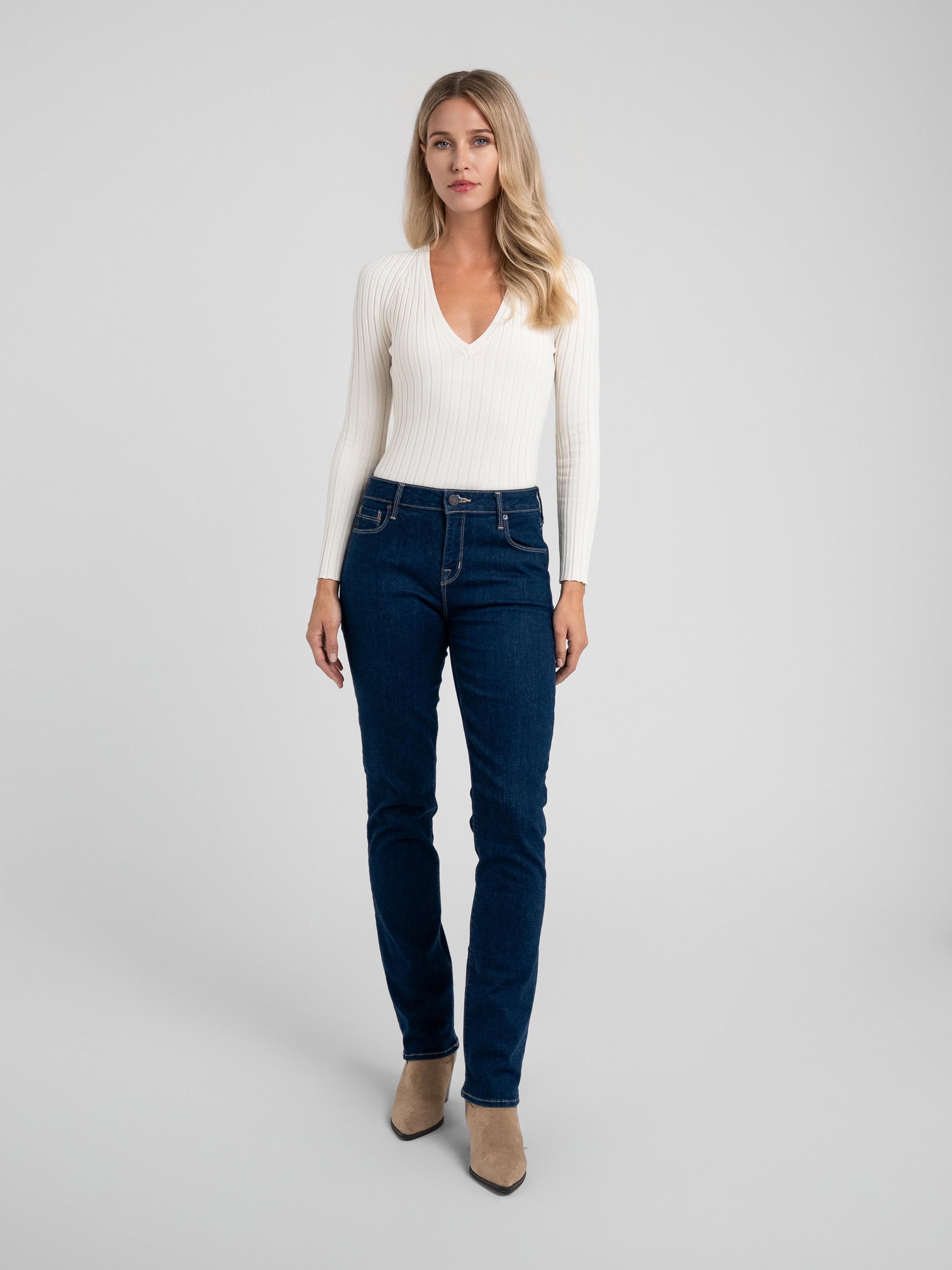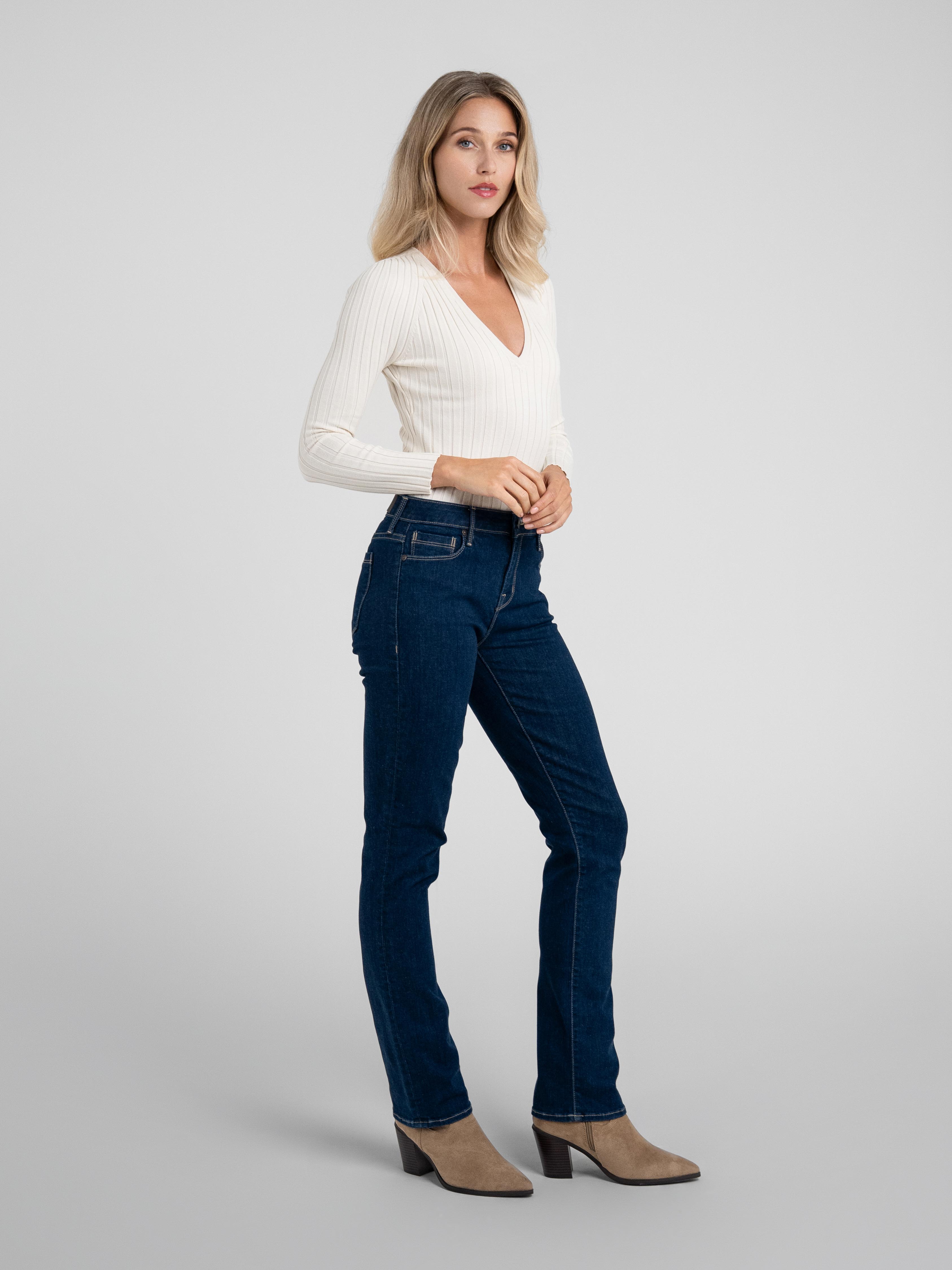 Made in LA from our signature Japanese stretch denim, our slim straight jeans feature a modern, slightly relaxed silhouette with a mid-rise. The sleek design effortlessly flatters your figure, creating a timeless classic look that transcends seasons and trends.