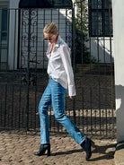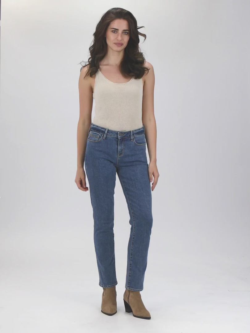 Made in Los Angeles from our signature comfort Japanese denim, our slim straight fit offers a modern, featuring a relaxed mid-rise fit with a mid-rise. With a sleek and slender silhouette that effortlessly flatters your figure, these jeans offer a timeless classic look that transcend season and time.
