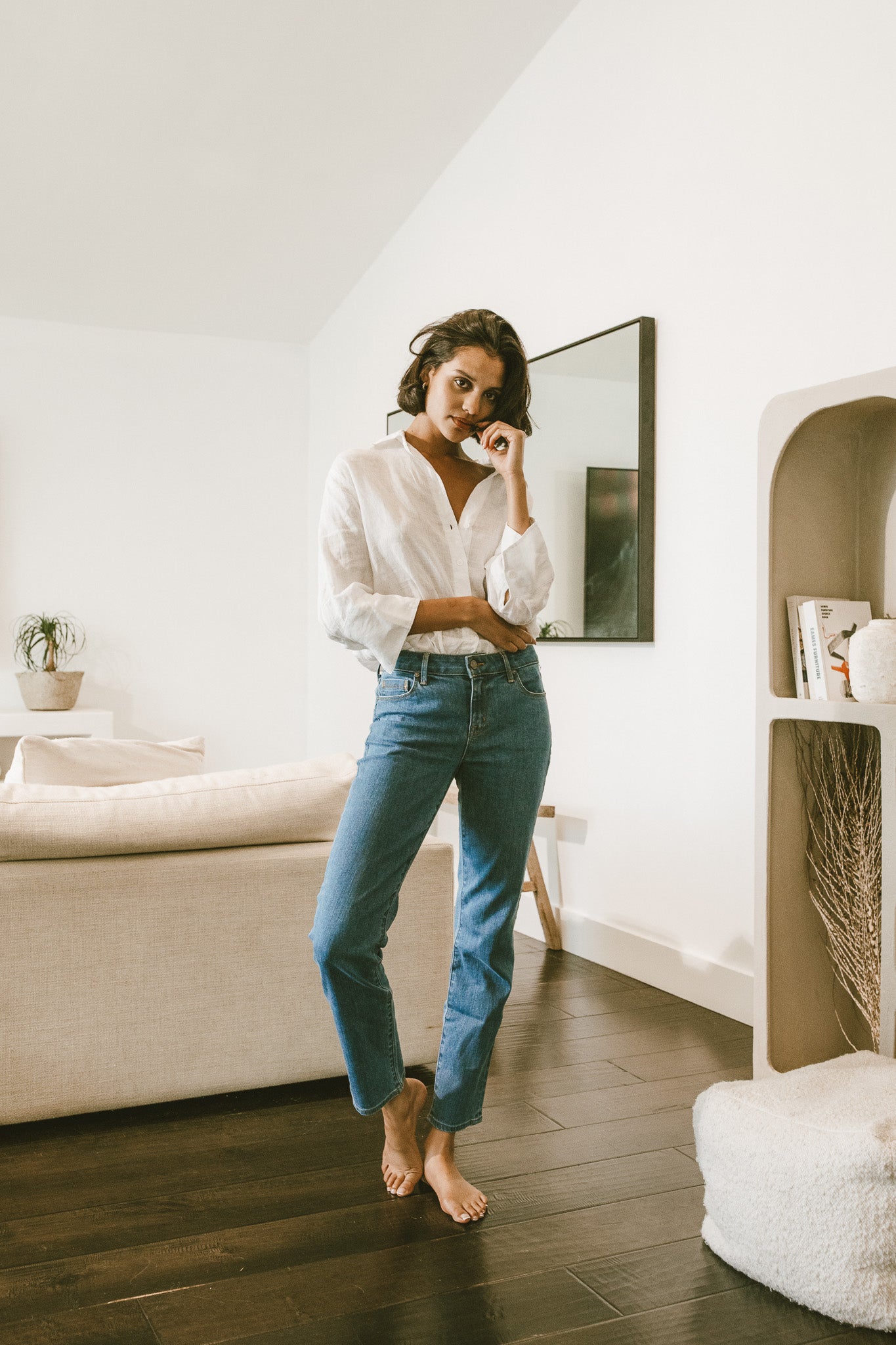 Relaxed and flattering in all the right places, our Boyfriend jean features a 30” inseam and a slouchy 11” high-rise that is effortlessly sexy and cool. Handcrafted in LA with soft, stretchy Japanese denim for the perfect fit, from day to night