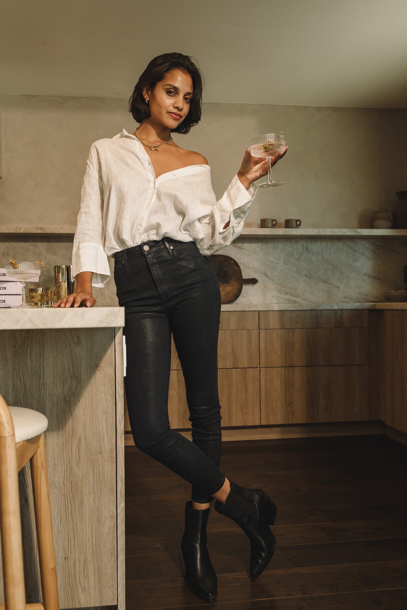 Our classic skinny jeans, with a 29” inseam and a 10.5” high-rise, shape your figure for a flattering and sculpted fit. Made in LA offering a look and feel that flatters and elongates your legs.