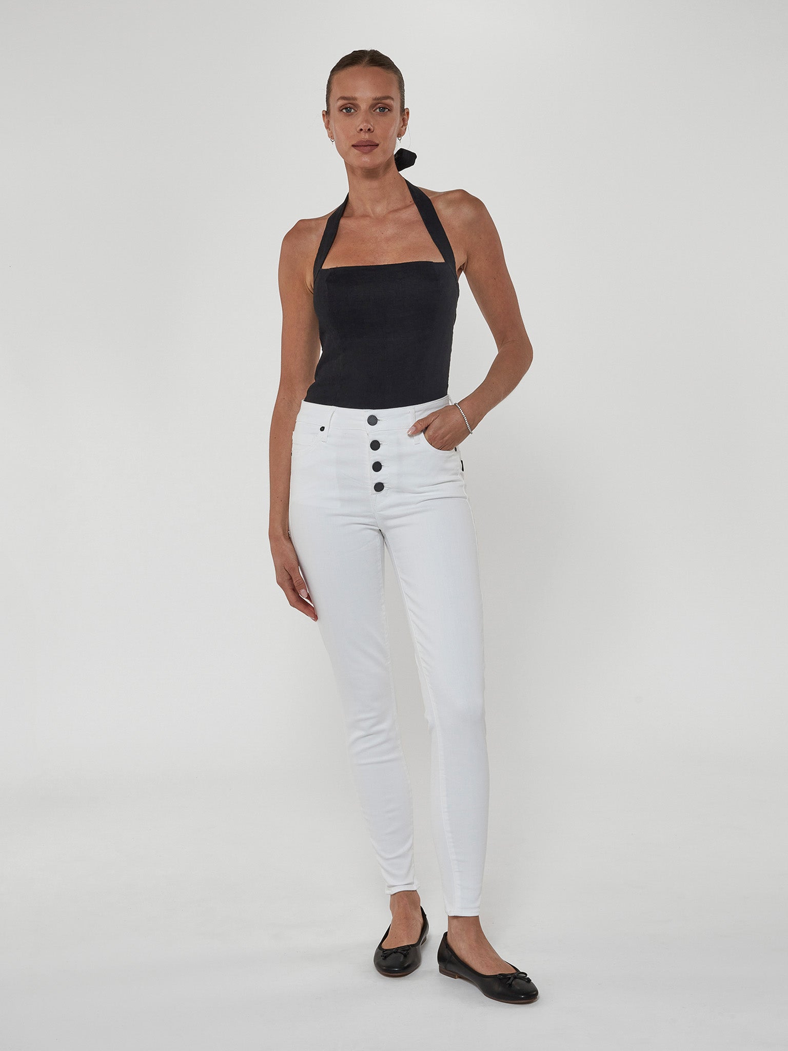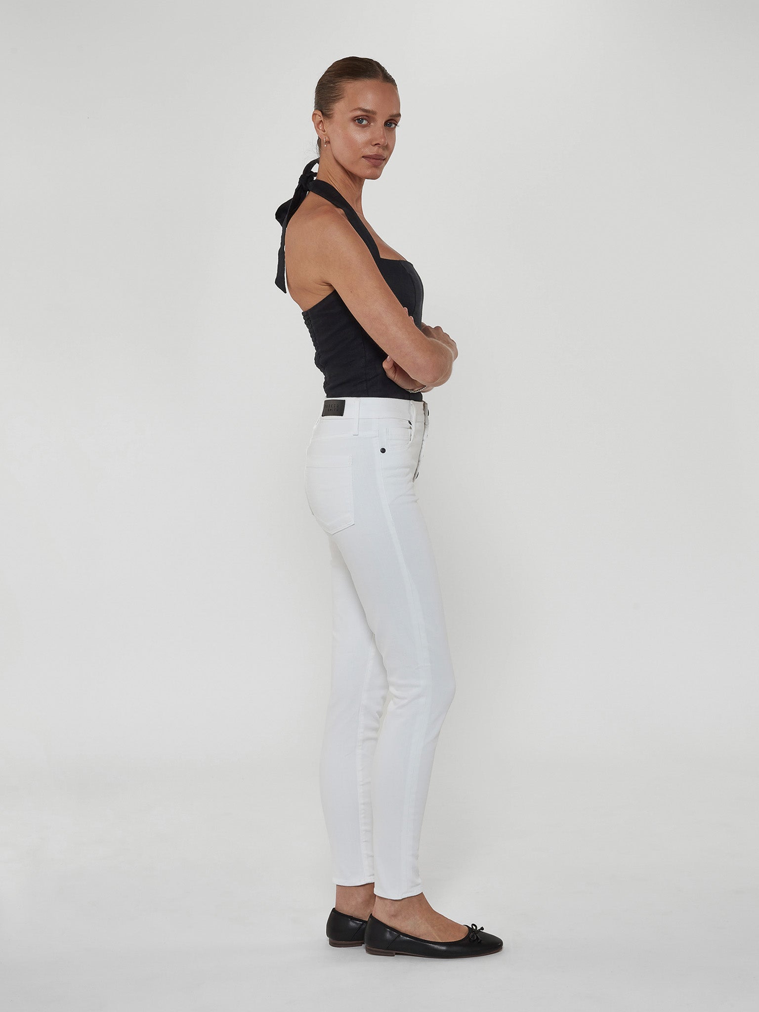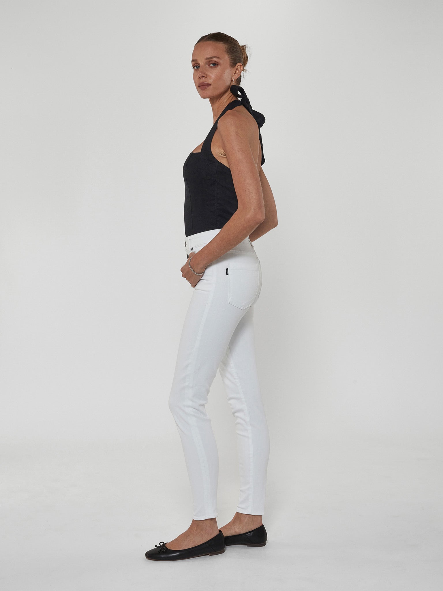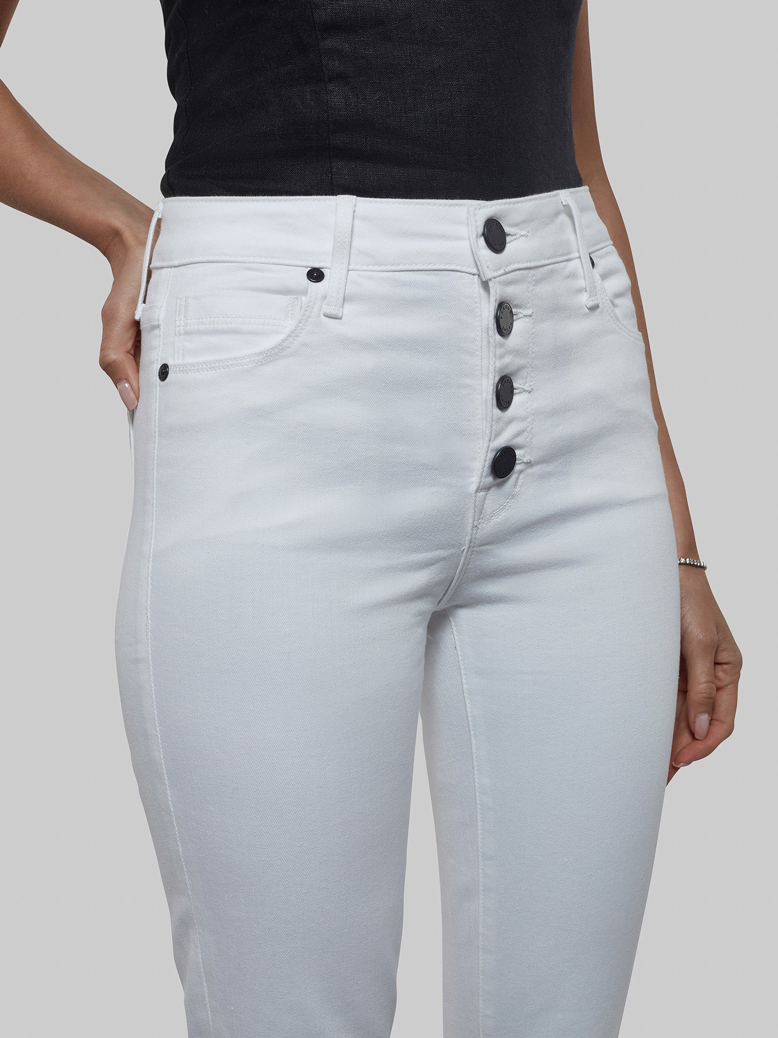 Hand-crafted in LA with eco-friendly Japanese modal blend fabric, the Eternal White Skinny Jean in Twill keeps its bright white hue without fading. Featuring a high rise, exposed PS signature buttons, and shapes your figure for a flattering and sculpted fit.