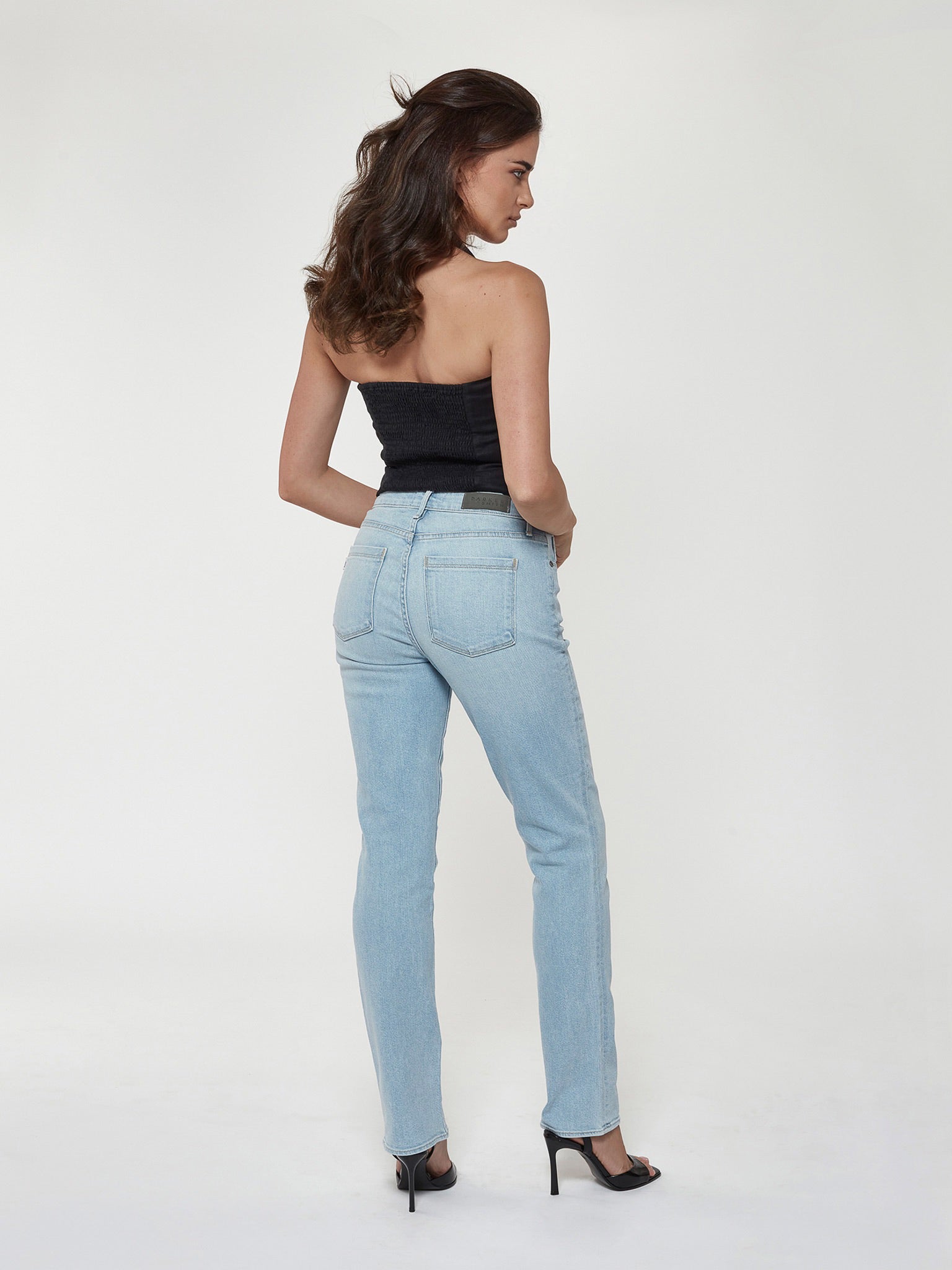 Our flattering slim straight creates a sleek silhouette with a straight fit from the mid-thigh to the leg opening, boasting a figure-sculpting high-rise. Hand-crafted in LA from luxurious stretch Japanese denim that will provide comfort and style from day to night.