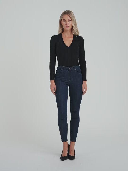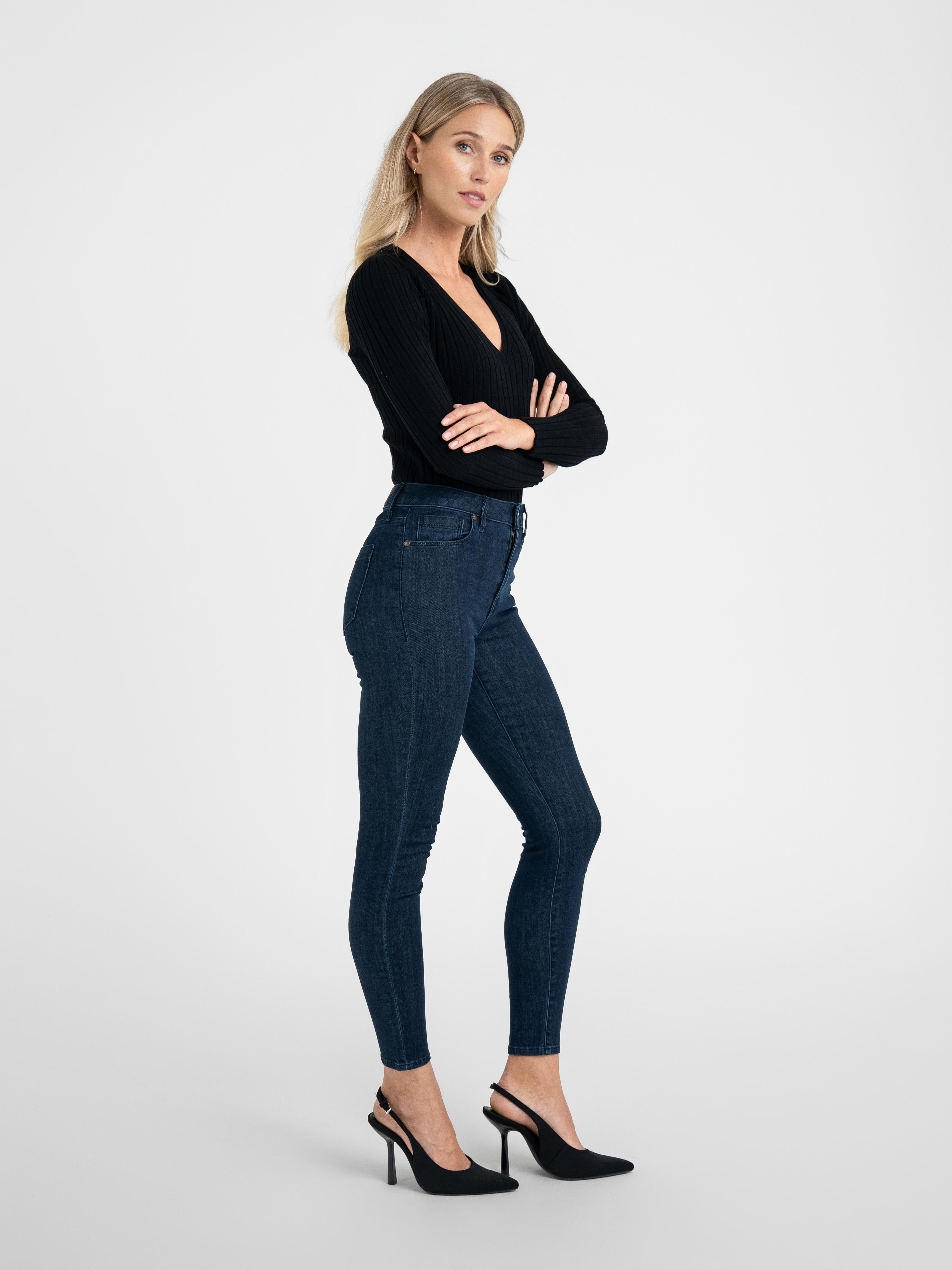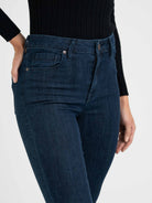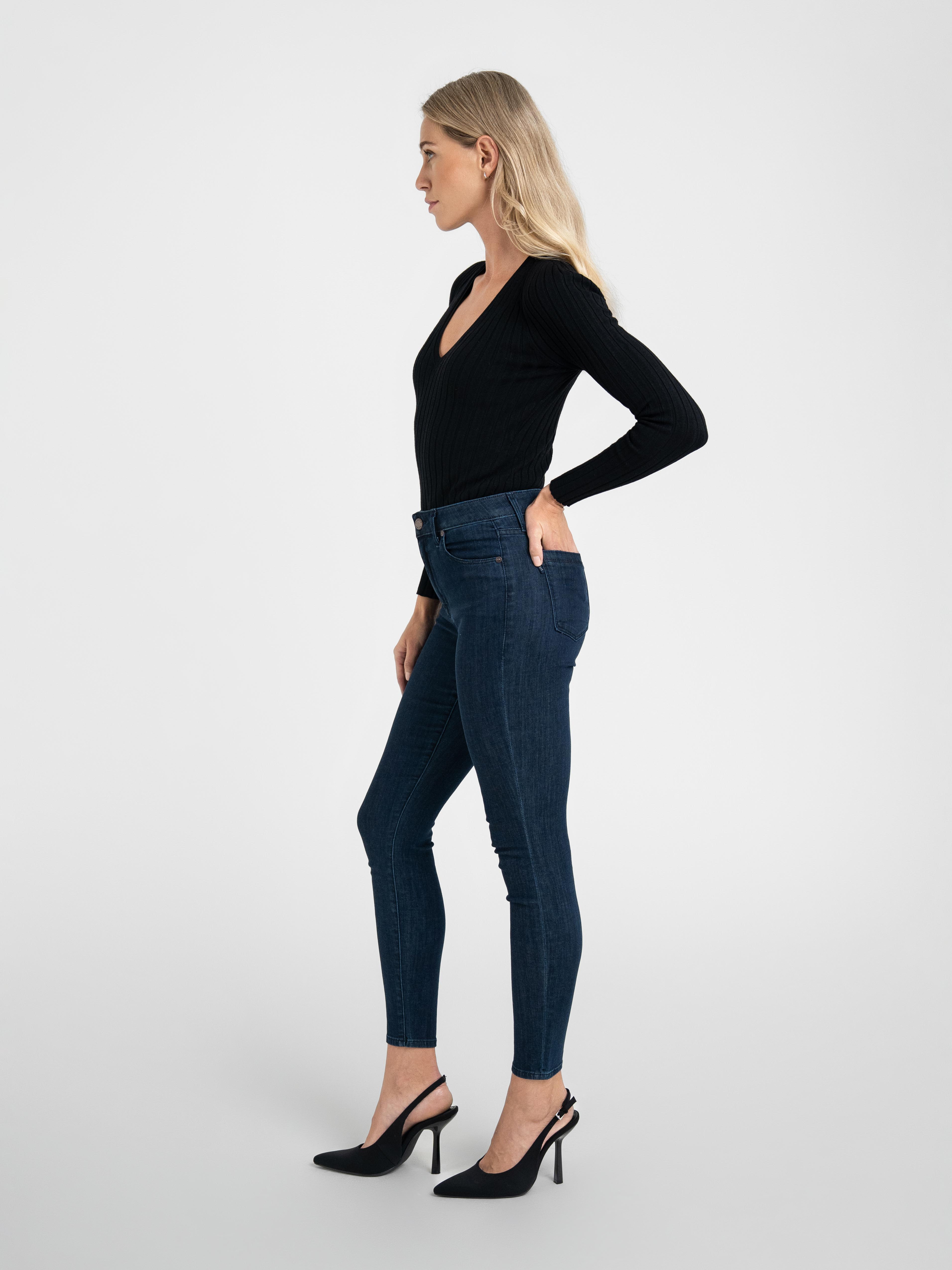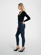 A versatile and flattering favorite, boasting a figure-sculpting ultra-high rise and a rich, dark blue wash. Hand-crafted in Los Angeles from our signature Japanease flex denim for supreme comfort, this best-selling silhouette fits like a glove, making it your go-to daily choice and a popular wardrobe staple.