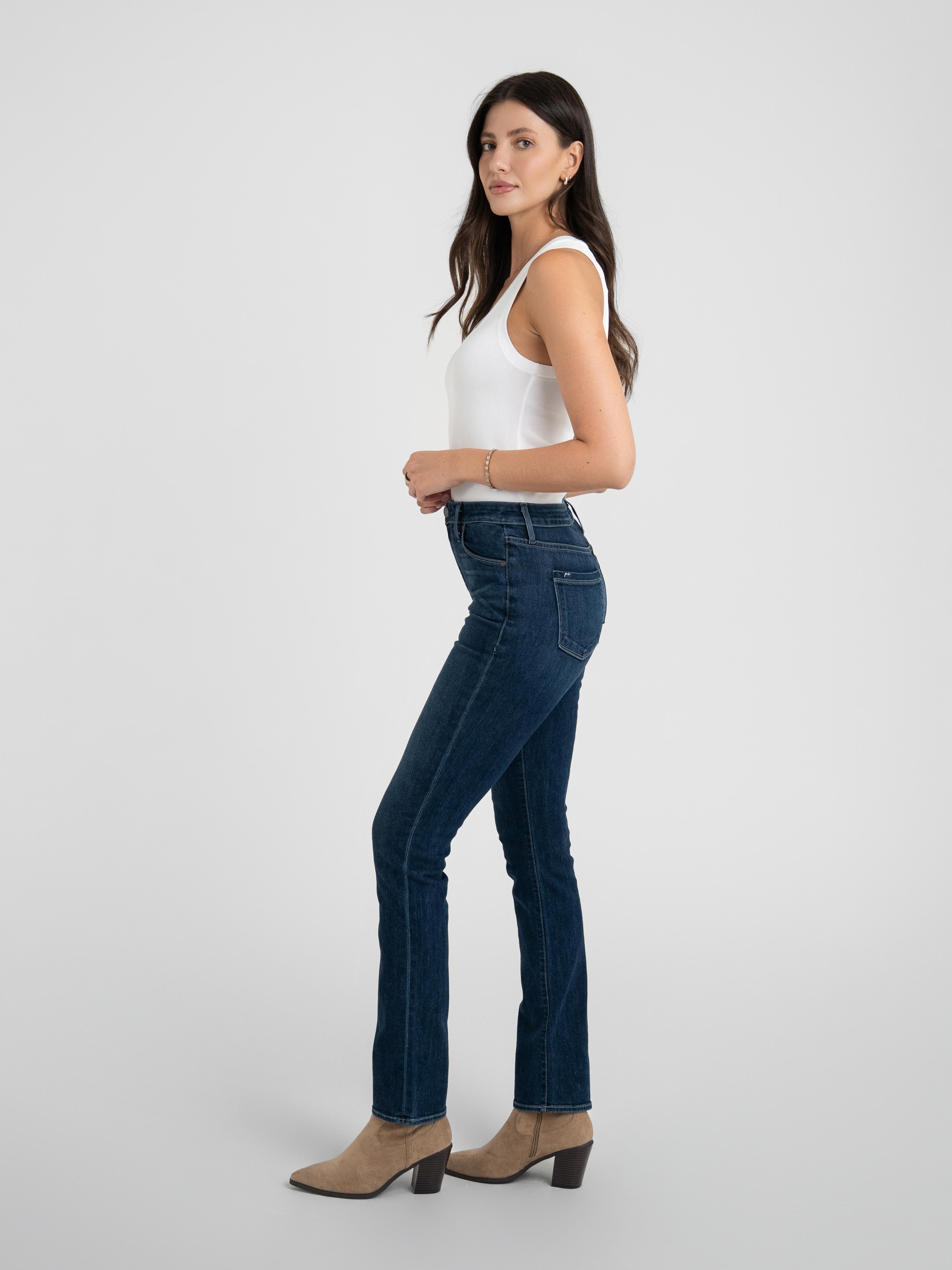 Our straight fit is a flattering favourite, boasting a high-rise and elegant dark blue shade faded in all the right places. Hand-crafted in LA from luxurious stretch Japanese denim that will provide comfort and style from day to night.