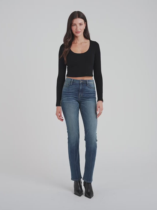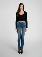 Our straight fit is a flattering favourite, boasting an high-rise and elegant denim wash faded in all the right places. Handcrafted in Los Angeles from a premium and comfortable Japanese cotton blend fabric, this best-selling silhouette fits seamlessly, making it your go-to choice and a popular wardrobe staple.