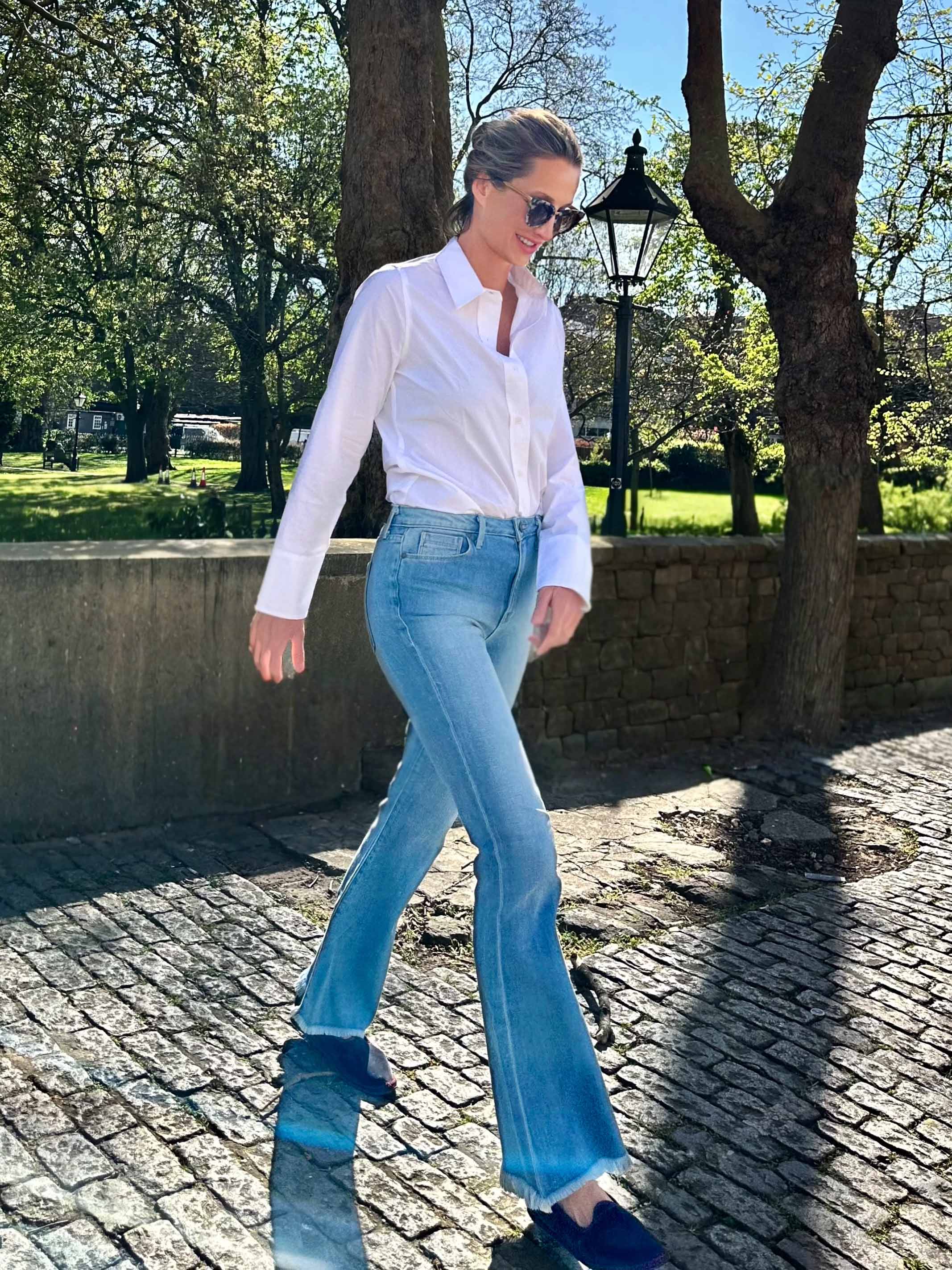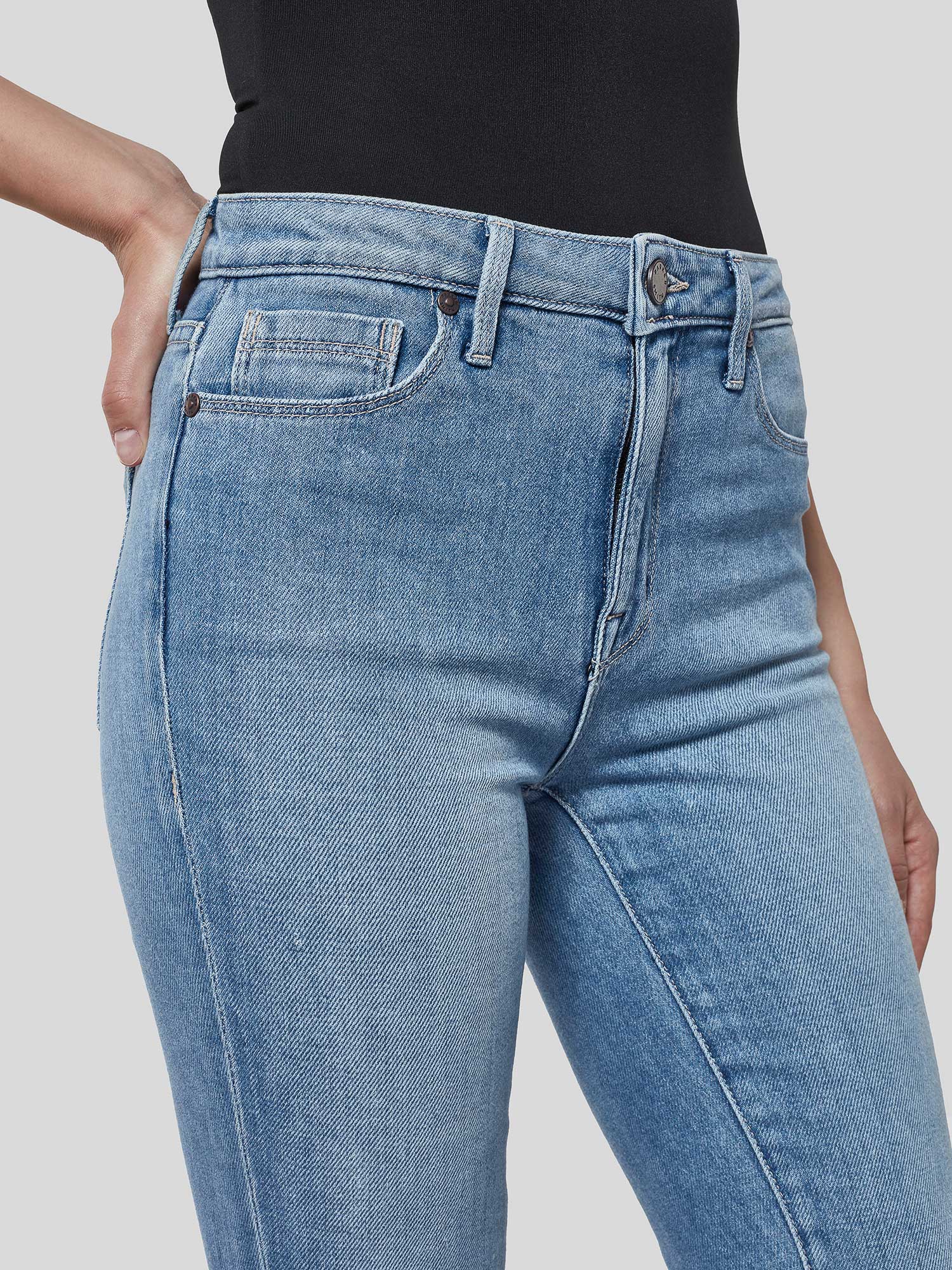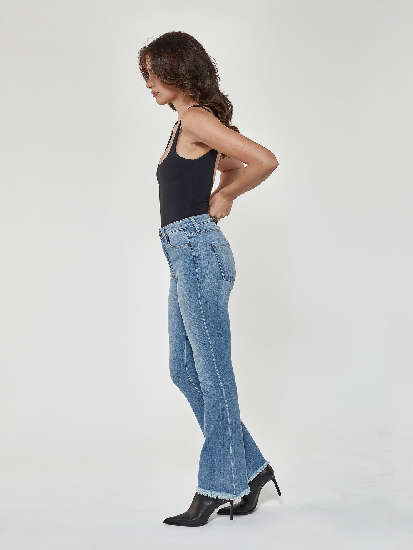 Watch heads turn when wearing our all-new wide flare with fringe. This fit offers a 31” inseam, a slightly wider leg opening, and a high-rise cut that flatters and elongates your legs for an incredibly slimming silhouette. Hand-crafted in LA from luxurious stretch Japanese denim for an ultra-soft, body-sculpting fit. A statement like no other.