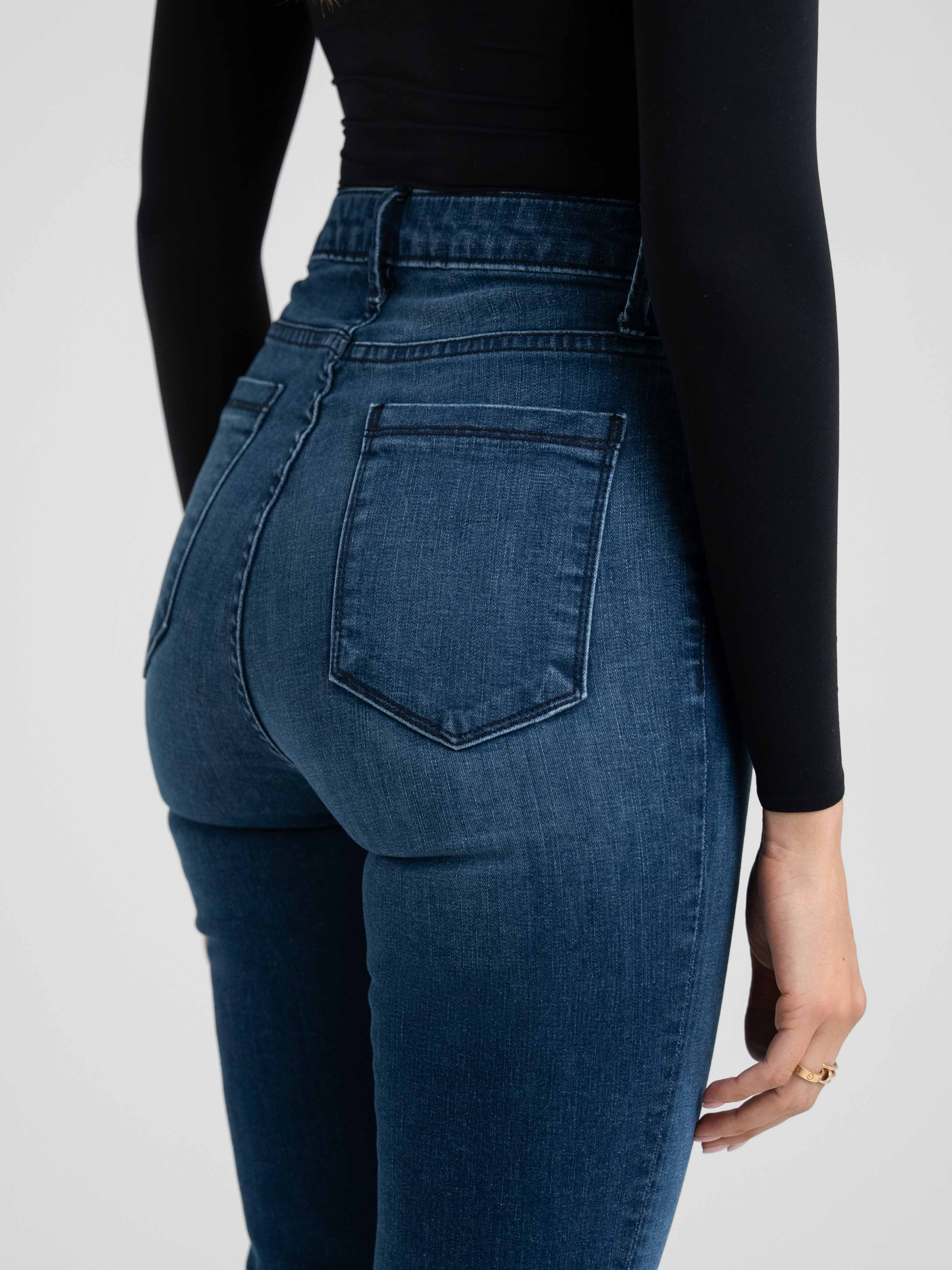 Our newest straight fit with a front slit is a flattering favourite, boasting a super high-rise and elegant dark blue shade. Hand-crafted in LA from luxurious stretch Japanese denim that will provide comfort and style from day to night.