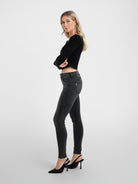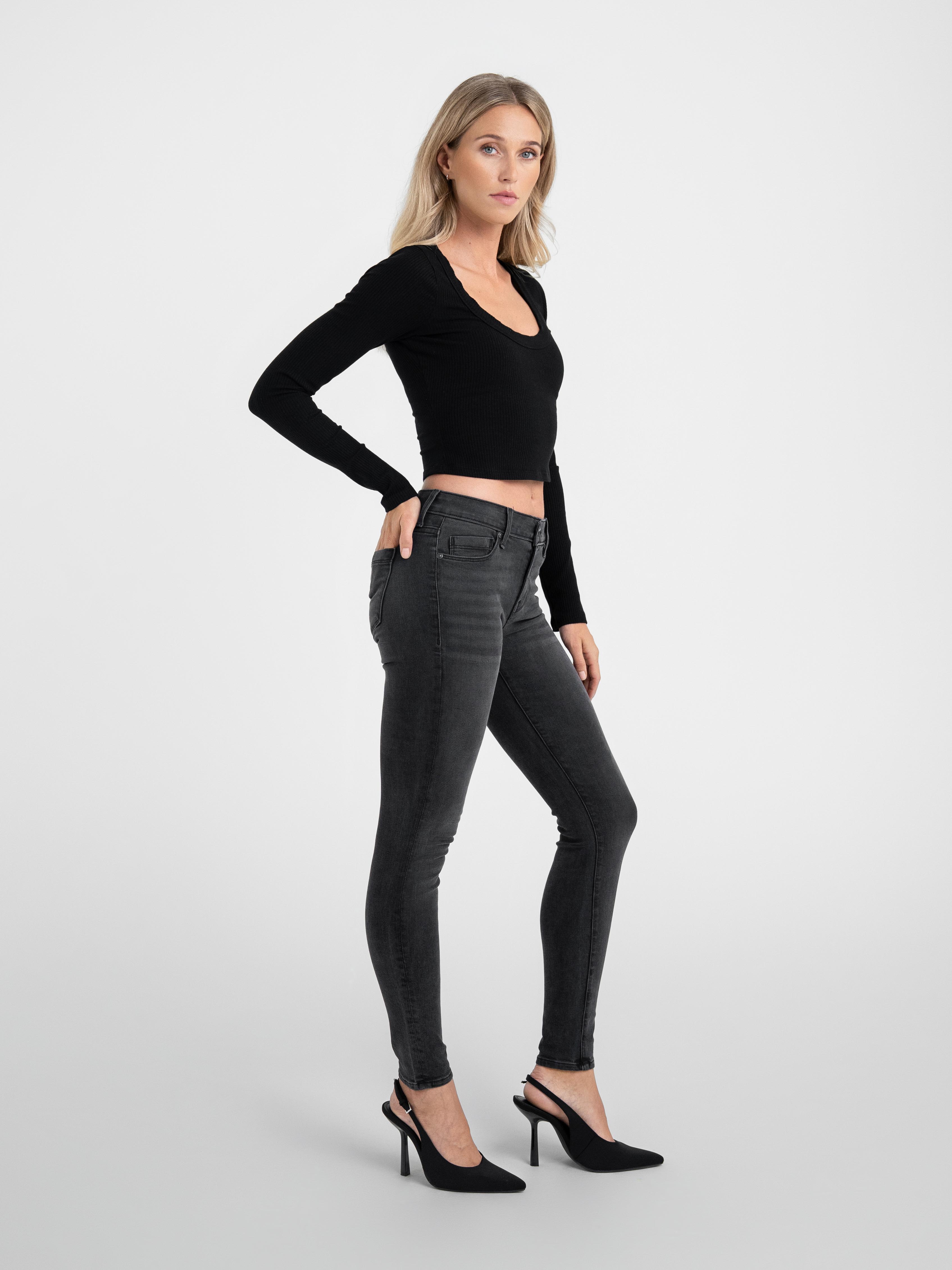 Our skinny is the ultimate wardrobe staple that fits like a dream. Hand-crafted in Los Angeles from our signature European black denim these are the perfect choice for comfortable everyday wear. Featuring a mid-rise, these shape your figure for a flattering and sculpted fit.