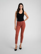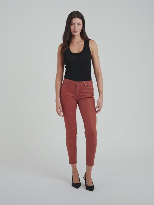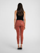 Our skinny is a flattering favourite, boasting a mid-rise and elegant waxed Burnt Red finish. Hand-crafted in LA from our signature Coated Twill with a soft, sleek and shinny look and feel, this best-selling silhouette fits like a glove.