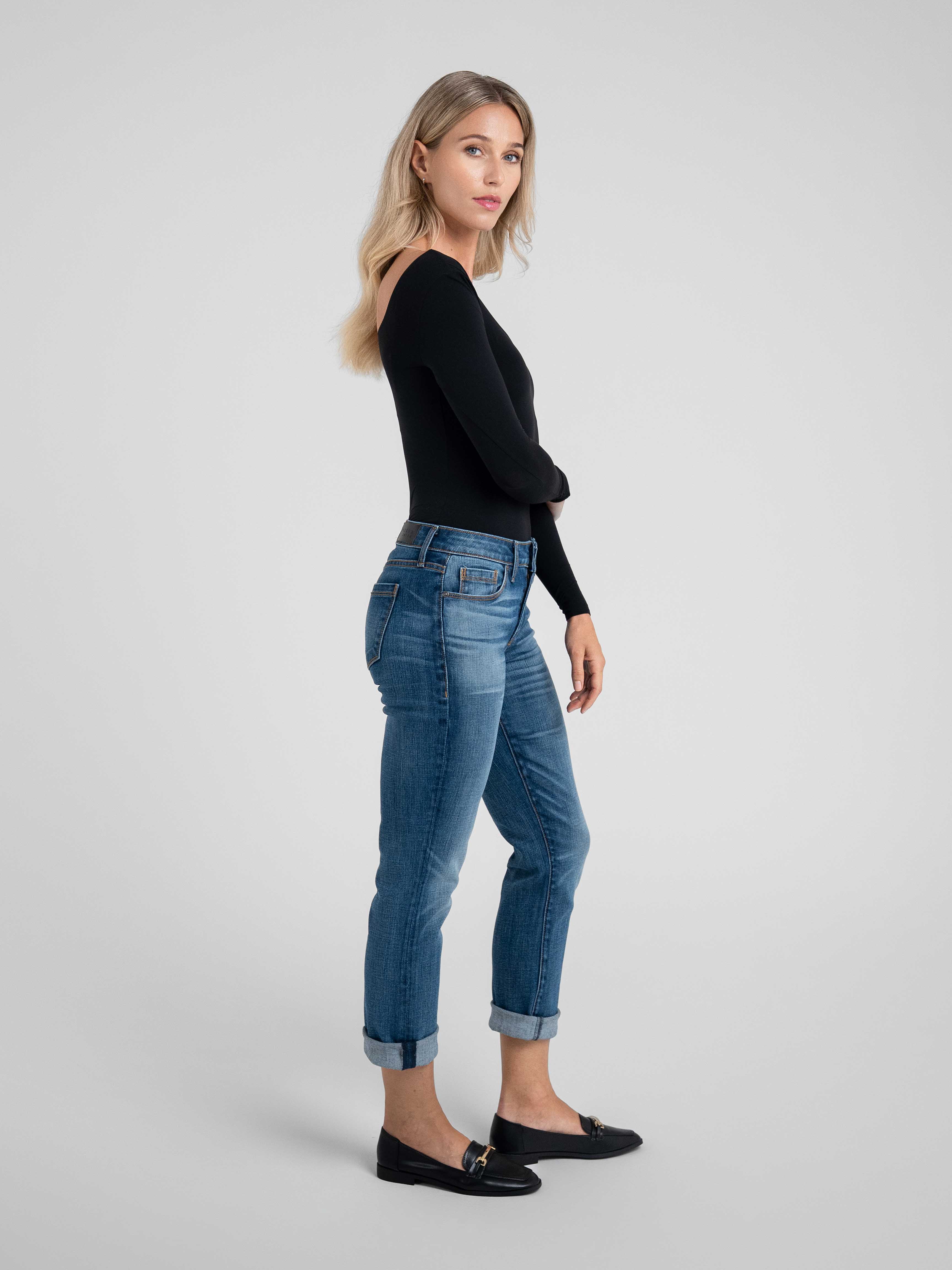 Designed to transcend seasons, our straight cuffed jean is fitted through the hip with a relaxed leg opening and an adjustable cleaned cuffed hem that allows you to create the perfect cropped look.